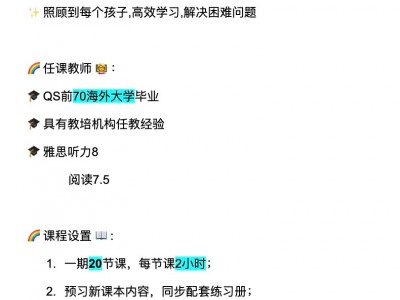 2023年英语暑期班开课啦 招生对象:六年级-初三 小班授课,专业师资,任课教师毕业于QS榜排名70的海外大学 预习新课内容,针对性辅导 全程辅导暑假作业,答疑解惑 ☎️电话:(微信同号) 前15名报名者享受最低优惠[哇][哇]