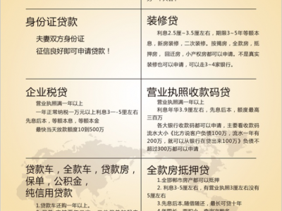 身份证,贷款车、全款车,贷款房、全款房,保单,营业执照、社保公积金、公司缴税开发票的,缴税的, 烟酒门市 有烟草证的。
