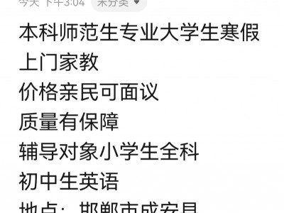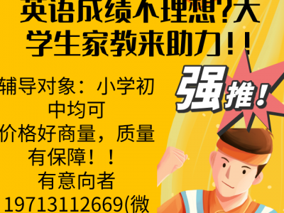 想提升英语成绩??大学生家教来助力!选择大学生家教,让孩子在轻松愉悦的氛围中享受学习的乐趣,为未来发展奠定坚实基础! ☎(微信同号)欢迎咨询相关问题