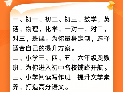 一、初一、初二、初三、数学,英话,物理,化学,一对一,对二,对三,班课。为你量身定制,选择适合自己的提升方案。