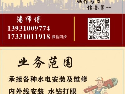 承接各种水电安装及维修,内外线安装,水钻打眼,旧房改造,水电施工