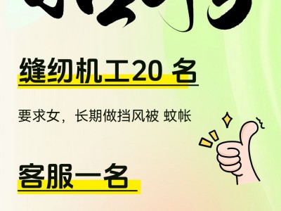 招缝纫机工20 名 要求女
