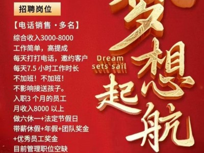 招聘了招聘了! 电话销售:年龄25~45周岁/工作时间上午8:30——12:00下午1:30——5:30上六休一不耽误接送孩子,法定节假日带薪休假,综合薪资3000——8000上不封顶!学历不限有没有工作经验都可以!入职越久客户量积累越多收入稳定,待遇优惠,可随时面试!地址:成安县业玖大厦