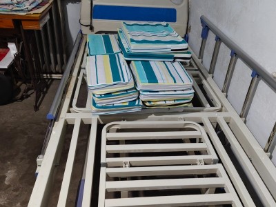 现出售二手多功能手动护理床。9成新。 可以左右翻身,起背,调节头部背部高度,落腿,抬腿。输液杆,餐板,全套,一件不差。 有需要的可以联系。