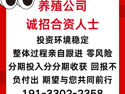 养殖公司诚招合资人士,投资环境稳定,整体过程亲自跟进,零风险,分期投入分分期收获,回报不负付出,期望与您共同前行。