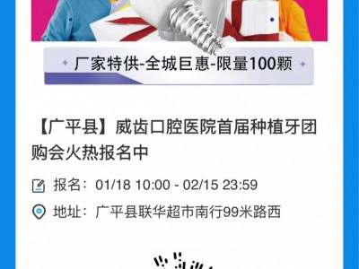 广平人看牙福利!威齿口腔厂家种牙补贴活动开启,1980元/颗全包价,报名倒计时啦~仅限100颗