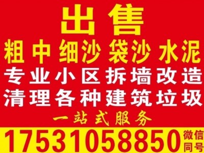 【专业拆除·拆墙·拆地砖】 【铲顶·铲墙】 【修补地面·地暖回填】 【各种建筑垃圾清理】 【粗/中/细沙·袋沙】 【石子·水泥】 【红砖·水泥砖·加气砖】 最低的价格·最好的服务