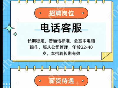 长期稳定 普通话标准 会基本电脑操作 服从公司管理 年龄22-40岁 本招聘长期有效