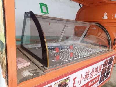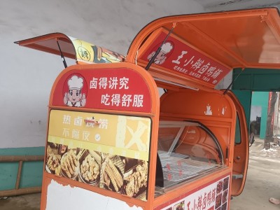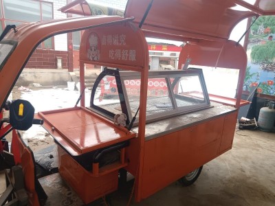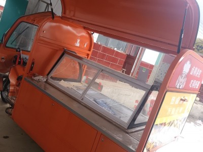 出售餐车,凉菜车长3米宽1米,加厚不锈钢平台,鸥翼门三轮餐车,带1米五的冷藏柜,带灯箱广告,不带电池,成色非常新,有需要的联系