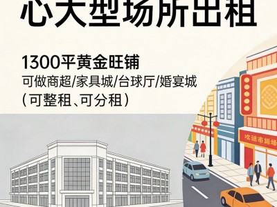 成安县城中心地段,大型场所出租,1300平(可整租、可分租),可做商超、家具城、台球厅、婚宴城等。人流量大,街道繁华