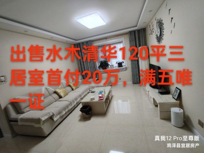 出售水木清华120平,精装修三居室送地面储藏间,首付25万。